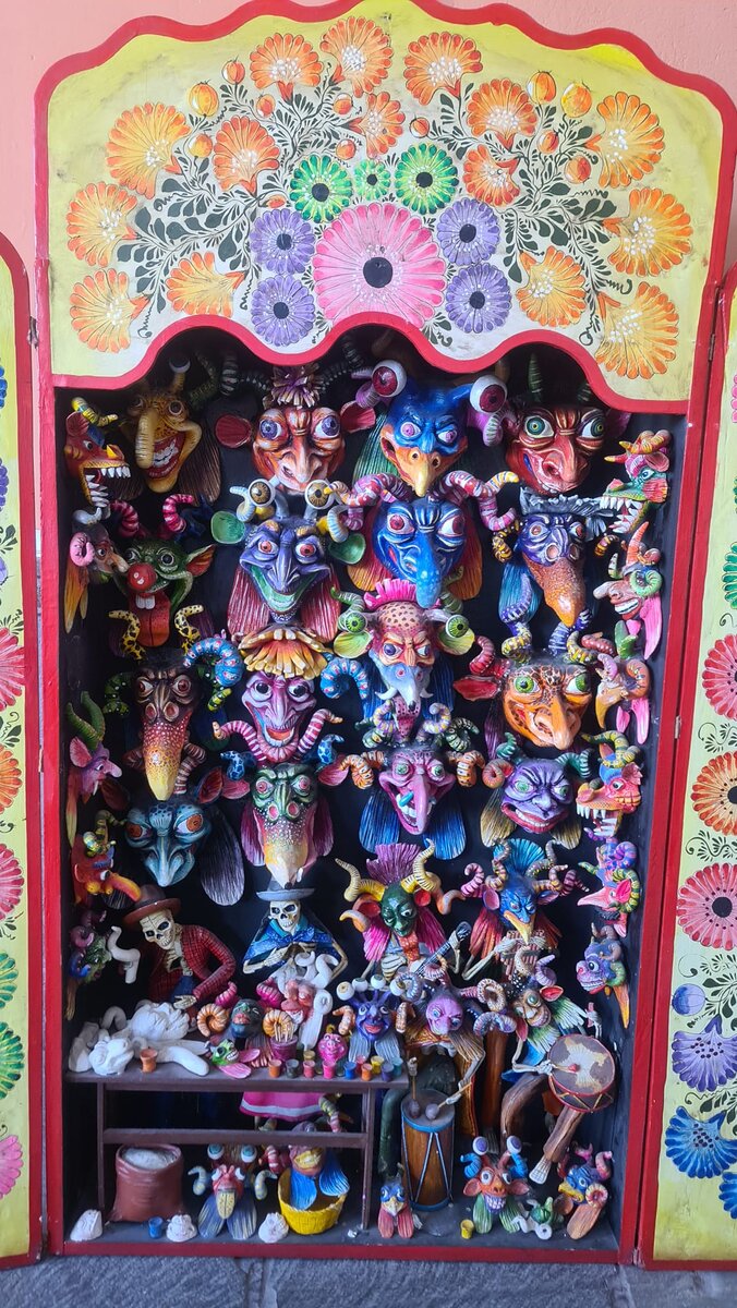 Алтарь Аякучо .Это одно из самых узнаваемых проявлений перуанского искусства. Это художественное выражение региона Аякучо который берет свое начало в восемнадцатом веке. Мастера этого искусства хранят свои секреты и стараются передать их своим потомкам и ученикам, чтобы овладеть техникой,они должны проводить годы в мастерских. Алтарный образ включает в себя много тонкой и деликатной работы, одним из ключей является приготовление пасты, из которой сделаны фигурки, из отварного картофеля с гипсом. Запрестольные образы изготавливаются в прямоугольных коробках, как правило, из кедрового дерева. Хотя стандартной нормы для его размеров нет, классический запрестольный образ имеет высоту 32 см и ширину 26 см. Внутри помещаются фигурки размером около 6 сантиметров. Задняя часть обшита тонким деревом, а дверцы прикреплены к ящику кожаными планками, выполняющими роль петель. На них изображены девы и святые, патриотические сцены, также часто представлены военные подвиги, а могут быть посвящены в