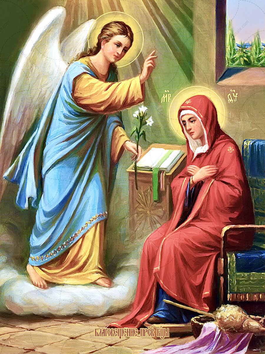 Великий пост. На трапезе разрешается рыба. Благовещенье Пресвятой Богородицы Свт. Тихона, патриарха Московского и всея Руси (1925). Прп. Саввы Нового (1948). Иконы Благовещения Божьей Матери (XVI). Благовещенье Пресвятой Богородицы Значение слова «Благовещение» – благая, радостная весть, то же, что и Евангелие. Этот праздник посвящен воспоминанию о возвещении Архангелом Гавриилом Деве Марии тайны воплощения от Нее Сына Божия. По достижении Марии 14 лет, возраста совершеннолетия, Ее обручили восьмидесятилетнему старцу Иосифу, которому поручили хранить Ее девство. Переселившись в Назарет, Мария продолжала вести ту же благочестивую жизнь, что и в храме. В день явления Архангела, по одной из версий, она ткала церковную завесу, по другой – размышляла о прочитанных в книге пророка Исаий словах: «Дева во чреве примет и родит Сына, и нарекут Ему имя: Еммануил, что значит «С нами Бог» (Ис. 7, 14). Возвестив волю Божью, архангел ждал от Девы Марии добровольного согласия, поскольку Господь н
