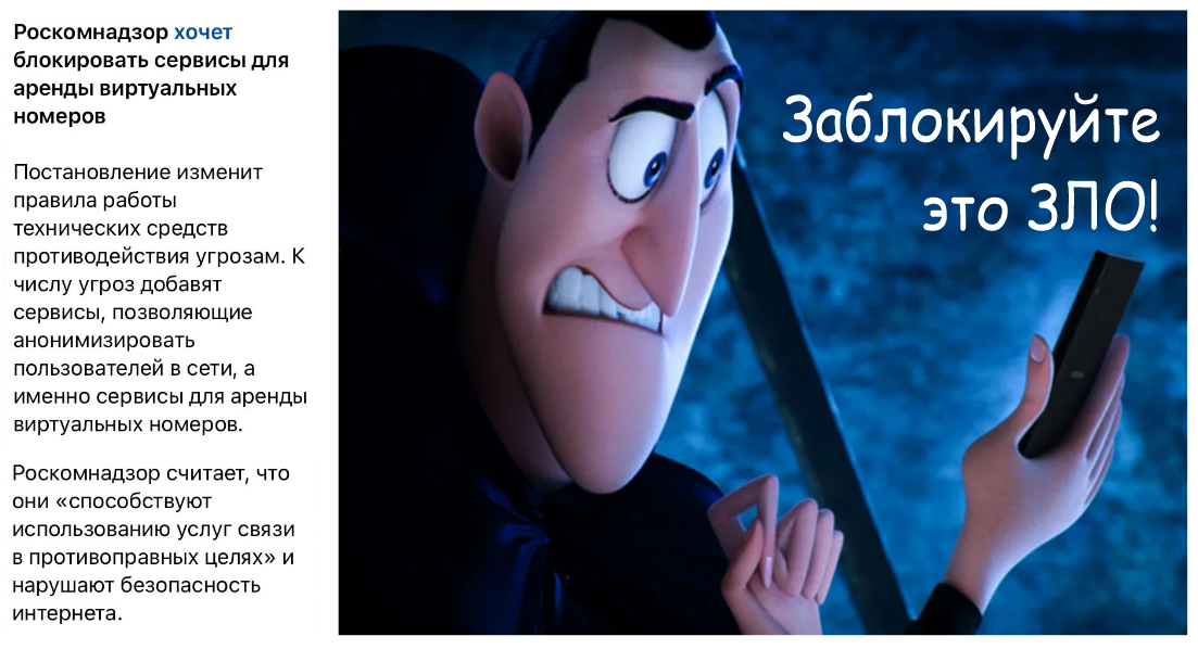 Увидел новость, что Роскомнадзор собирается блокировать сервисы, которые дают в аренду виртуальные номера. Таким образом будут бороться с анонимностью. А то регистрируются кто попало, потом совершают противоправные действия.