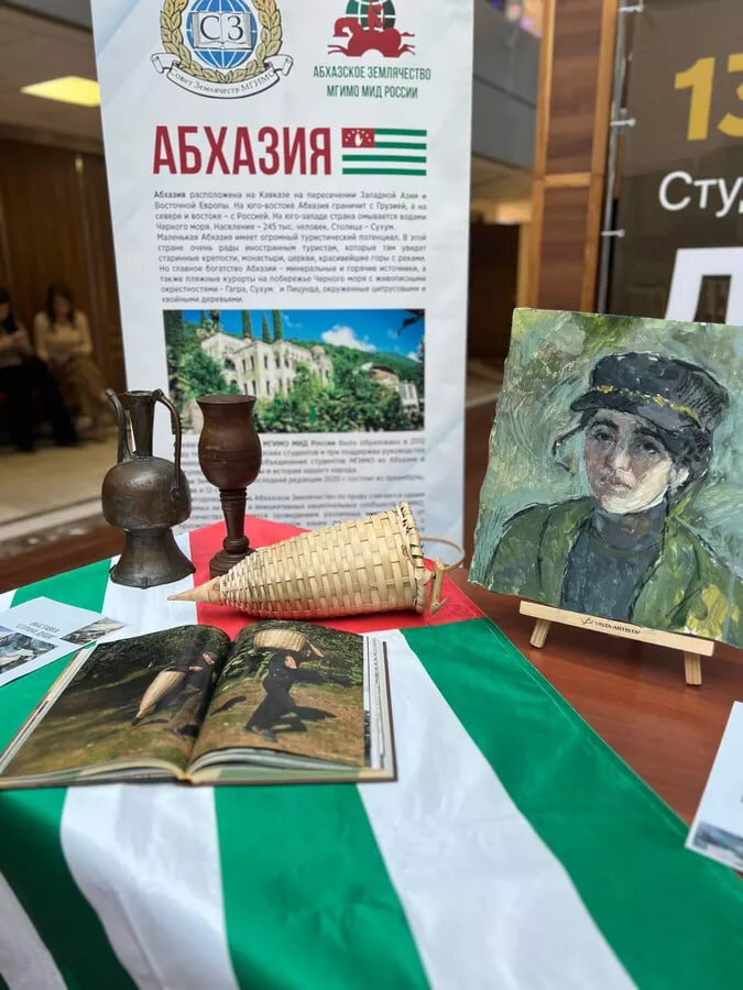 На выставке в Московском государственном институте международных отношений представили предметы быта и труда абхазских промысловиков-охотников, национальную одежду, памятные монеты, банкноты, картины и документальные фильмы. МОСКВА, 26 мар – Sputnik, Анжелика Бения. Выставка "Страна души", организованная Абхазским землячеством, завершила свою работу в Московском государственном институте международных отношений в воскресенье, 26 марта. Часть выставки, посвященной культуре Абхазии, была представлена работами абхазских художников, среди которых были начинающие мастера и уже известные имена, такие как член Творческого союза художников России Борис Ашуба. Среди гостей выставки были и те, кто ни разу не посещал республику и мало что о ней слышал. Благодаря выставке с Абхазией познакомилась и кореянка Кристина Пак. "Раньше я не так много знала о республике, но посетив выставку, я, действительно, прониклась ее культурой и колоритом. Особенно меня зацепили картины. Пейзажи так поразили меня, ч