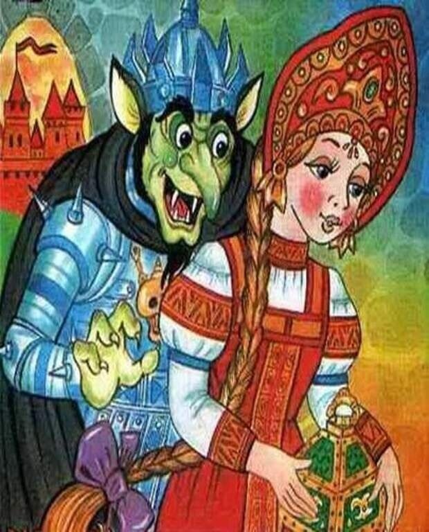 Часть 1 Часть 2 Часть 3 Часть 4 Кащей сстоит диву, даётся Баба Яга: Ну, что застыл? Стоишь, как изваянье, Держись-ка за метлу И не теряй сознанье. Кощей держится за метёлку. Ты, Василиску призывал? Господь меня к тебе послал. Кащей О! Мать моя! Яга: Мать твоя женщина А я же - дева. Здесь потому, что замуж захотела. Кащей: Ты королева, а не баба. Вот королеву мне и надо. Баба Яга: Ага, сейчас вот, разбежалась. Не для тебя росла, преображалась. Кащейка, теперь ты, мне не пара. Я молода, а ты-то старый. Ни рук, ни ног ты не согнешь Ну как, к венцу, ты, поведёшь? Кащей О, Василиса, душечка моя, омолоди скорей меня. Баба Яга: Ну, что же: мне подумать надо. Я потружусь, конечно, за награду. Свои богатства не жалей. Расплатишься со мною, дуралей. Омоложу и душу, и сознанье Воздушным сделаю твоё я состоянье. Кащей Как Ангел, буду я летать. Баба Яга: На сковородке будешь ты скакать. Кащей Зачем такие мне мученья? Баба Яга: Это процесс омоложенья. Кащей В душе закралось сомненье. Баба Яга: Не бо