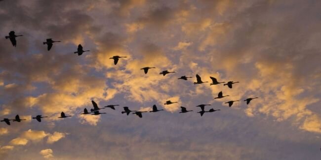 Большинство стай предпочитают совершать перелеты ночью, ориентируясь по звездам. Ночной покров отлично скрывает птичьи стаи от птиц-хищников. Отсюда и полет клином, помогающий экономить до 20% энергии от потоков впереди летящей особи. Первую птицу клина или вожака часто меняют, чтобы он не выбился из сил. За перелет побывать вожаком может почти каждая птица из стаи.