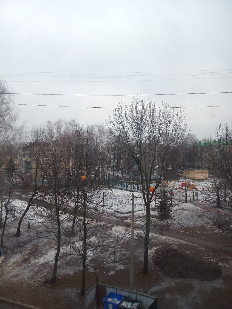 Погода у нас и сегодня пасмурная, ночью был дождь. Благодяря ему заметно снега поубавилось.