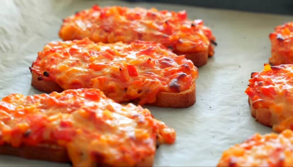 Ингредиенты: Приготовление: 1. Натереть на терке колбасу с сыром. Порезать мелко лук и помидоры (лук можно и кольцами, кто как любит). Добавит майонез, кетчуп и все перемешать. 2. На батон намазываем нашу начинку. Противень заселяем пергаментной бумагой. Отправляем наши бутерброды в духовку на 10-12 ми при 200 °C