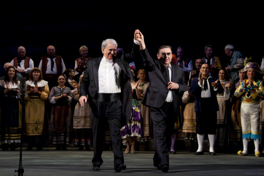 Безусловно, центральным событием фестиваля стал спектакль «Паяцы», приуроченный к 70-летию выдающегося молдавского тенора, народного артиста СССР Михаила Мунтяна. Постановка 1992 года была осуществлена Евгением Платоном и с тех пор стабильно держится в репертуаре с неизменным Канио – Мунтяном. Спектакль решён в реалистическом ключе – это именно та история, которую мы привыкли видеть в знаменитой опере Леонкавалло: на пустынной сцене – повозка-балаган странствующих артистов, которая во втором акте распахнёт свои створки-ширмы и превратится в импровизированную сцену, где артисты бродячей труппы разыграют последний и самый трагический спектакль своего репертуара. Сценография Вячеслава Окунева рисует живописный мир итальянской провинции, а яркие костюмы Ирины Пресс необыкновенно органичны в стихии комедии дель-арте, с которой обманчиво начинается второй, изначально беременный фатальным исходом акт веристской драмы.