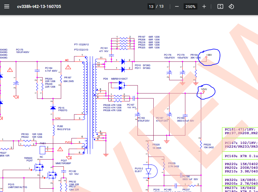 Я как мастер, конечно стремлюсь всё делать максимально профессионально и "по заводу", неисправные детали менять на оригинальные, в общем вы поняли....Но бывает, что клиенту надо, срочно и дёшево, главное, что бы работало..."- Ну ты там придумай что ни будь, ты же мастер......" Это как раз такой случай.... На телевизоре dexp cv338h-t42 установлена плата (MainBoard) CV338H-T42 , блок питания платы выдаёт два напряжения 12 вольт общего питания и 36 вольт для подсветки, сама же подсветка питается от 54, 8 вольт. Неисправность заключалась в неисправности микросхемы блока питания, она выгорела, так же были повреждены резисторы и фольга дорожек так же подгорела... Конечно по правильному, дорожки надо было восстановить, элементы заменить...но такой микросхемы у меня не было и ждать её доставки не хотели. По этому пришлось "импровизировать" , от 12 вольт подсветка работала, но этого ей явно было мало, от чего стоял свист дросселя...,Под рукой оказался блок питания ноутбука 19-20 вольт и этог