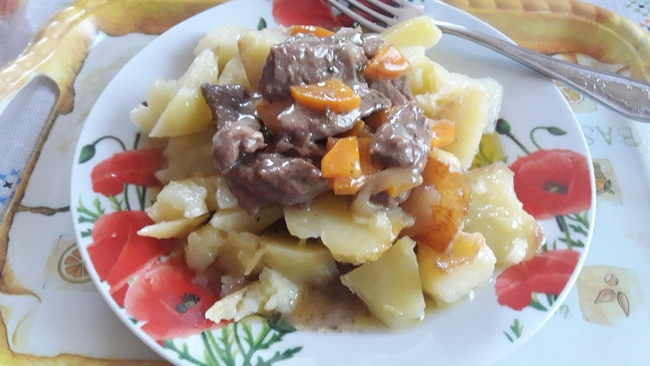 Здравствуйте, мои дорогие! Я сегодня к вам, опять с новым рецептом. Хотя рецепт конечно не новый, многие готовят гуляш из говядины, но я хочу предложить вам свой рецепт этого блюда. И так, начнем! Для приготовления нам понадобится: Говядина 500 гр Соевый соус 50 мл Кефир 50 мл Лук 1 шт крупный Морковь 🥕 1 шт средняя Приправа для мяса по вкусу Смесь сухих трав Мука 1 ст.л Вода 400 мл Любая приправа 1 ч.л Мясо хорошо промываем, режем на небольшие кусочки. Складываем в чашку. Туда же кладём приправу для мяса, наливаем соевый соус и кефир. Все перемешиваем и оставляем на 25-30 минут . Очищаем лук и морковь. Лук режем четверть кольцами ( хотя каждый может резать по своему ), морковь режем тоже на четвертинки. Разогреваем сковороду с растительным маслом. Выкладываем мясо и жарим до испарения жидкости . Кладем лук и обжариваем 3-4 минуты. Дальше кладём морковь и так же обжариваем 3-4 минуты. Потом кладём муку. Перемешиваем . Наливаем воду. Кладём смесь сухих, ароматны