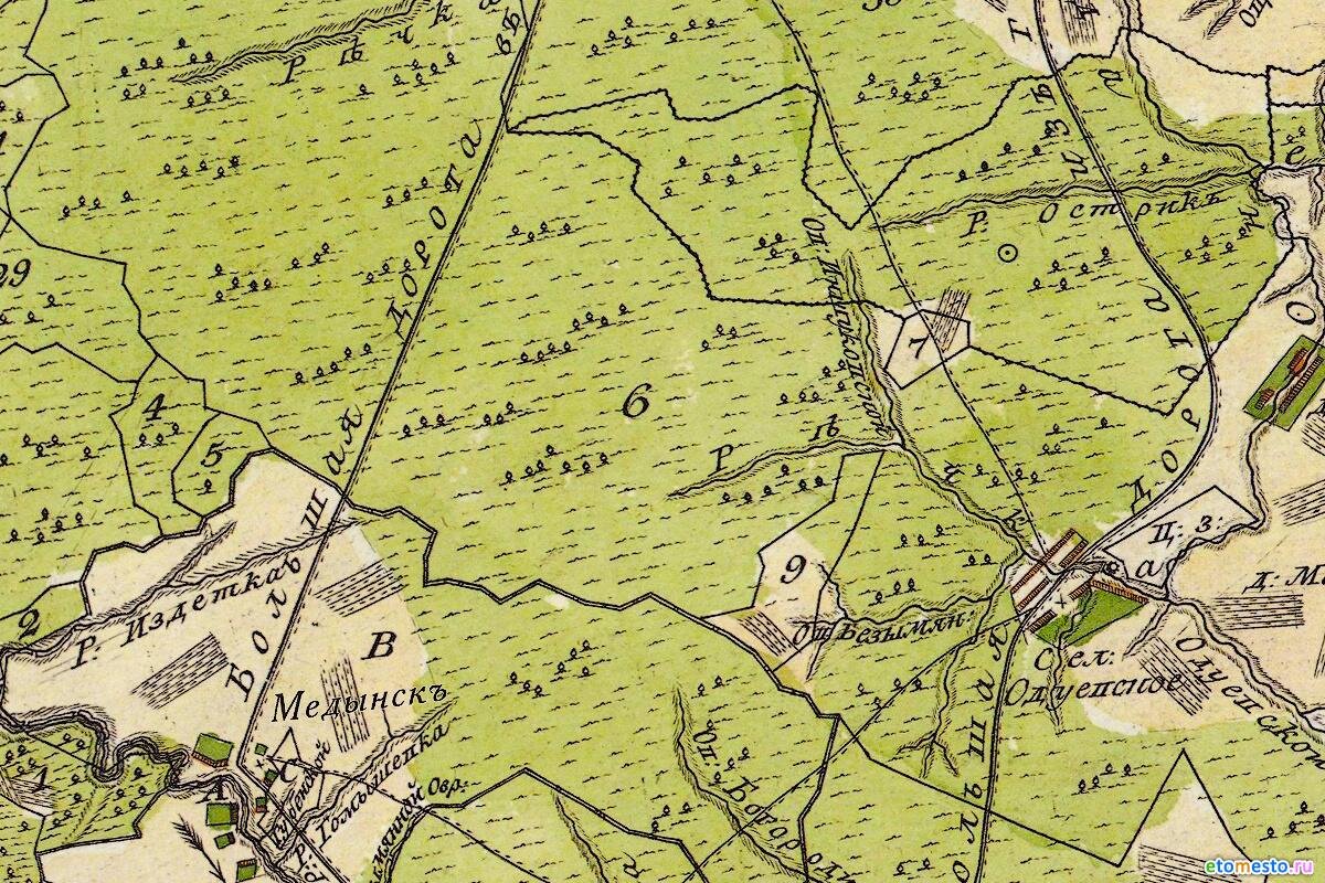 На более ранних картах медынской дороги ещё нет, только адуевская.