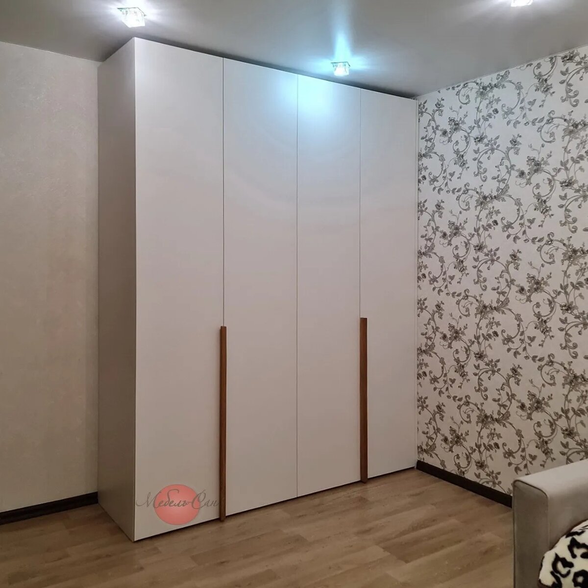 Материал изготовления: каркас и фасады ЛДСП Egger, выдвижные ящики на шариковых направляющих, механизм раздвижения шкафа WingLine L Hettich, ручки массив дуба.