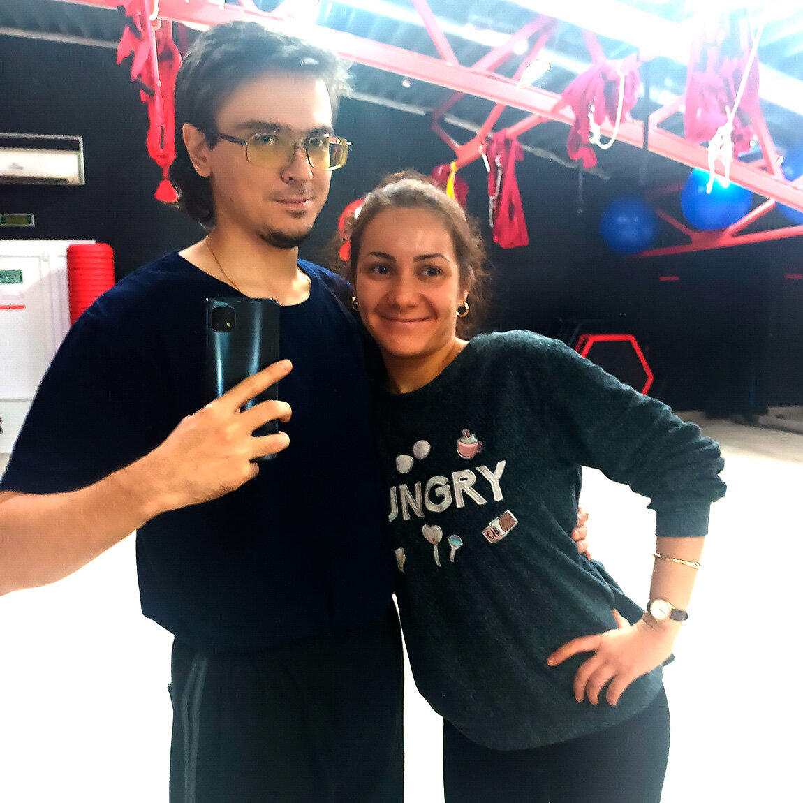 В 2021 году успевал ходить на фитнес довольно регулярно: 2-3 раза в неделю. В прошлом году выпал на несколько месяцев из-за травмы, потом с головой ушёл в режим “работа-съёмки-сверхурочная работа”. В итоге, как это обычно и бывает, несколько раз в неделю превратились в несколько раз в месяц. В этом году с января стараюсь вернуться в прежний ритм. И вот возвращаться гораздо тяжелее, чем продолжать по накатанной. Где-то уже рабочий график подогнать сложно, а где-то уже мышцы отвыкли выполнять упражнения. Но я знаю одно. Нельзя работать в спортивной экосистеме, принимать активное участие не только в продвижении, но и в создании мобильного приложения для спортсменов, и при этом не чувствовать эту приятную усталость после тренировок и этот азарт, когда у тебя получается сделать то, к чему организм не был готов ещё две недели назад. В фитнес-клубе "КосмоFit" с Севиндж Аллахвердиевой. Олег Черкалин.