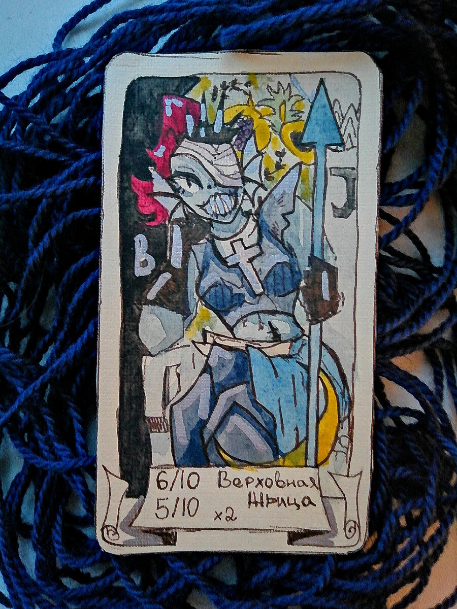 Собственно на карте, предоставлена к вашему взору - андайн. Андайн из Horrortale. Жепа ещё та, но на роль верховной жрицы, она подходила несомненно лучше всяких найтмеров. Про Horrortale я рассказывала в общих чертах чуть ниже (предыдущая статья), прочитайте, если не в курсах что это кто почему, зачем и тп.