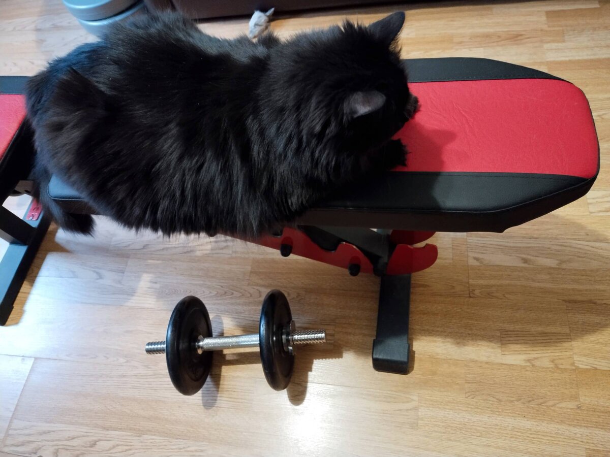 Дождливая погода не способствует бодрости духа и приливу сил. Но если сама себя не пнёшь, то превратишься в бегемота. Это я про себя и занятия спортом. Согласитесь, в выходной день куда как милее лежать на диване с книжечкой, да с куском домашней пиццы? Отбросив вкусные мысли о свежекупленном детективе, я переоделась в спортивный топ и шорты и начала разминку. Муж промычал что-то одобрительное и быстро перевинтил гантели со своего веса на мой. - Уруру? - разбуженная грохотом железа прискакала Буся, - ты мама с ума сошла? Зачем таскаешь эту неудобную палку? Возьми лучше меня на ручки и посмотрим в окошко. - Потом Бусёна, потом, - на выдохе просвистела я. - Мяв! - черное ухо всунулось в комнату. Так и вторая тут как тут. Теперь лишь бы не наступить нечаянно. Я приступила к выпадам. Буся решила, что мама специально присаживается пониже, чтобы было удобно гладить Бусенькино пузико и растянулась под ногами колбасой. Пока уносила с места спортивных действий Бусю, Баня воспользовалась момен