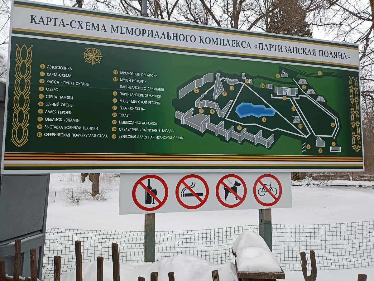 Здравствуйте, дорогие подписчики и гости моего канала. Как вы уже знаете, февральские праздники я провела в Брянской области. Недалеко от того места где я отдыхала находится мемориальный комплекс Партизанская поляна, который я решила посетить. Этот комплекс расположен в Брянских лесах на берегу реки Снежеть. В этом месте, накануне немецкой оккупации, в сентябре 1941 года, был произведен общий сбор всех брянских партизанских отрядов, начавших отсюда свой боевой путь. Создание мемориального комплекса «Партизанская поляна» ставило своей целью увековечить память обо всех участниках партизанского движения на Брянщине. Чтобы узнать больше информации о жизни партизан и о самом комплексе, я решила взять экскурсию по открытой части комплекса и по музею. За две экскурсии я заплатила 2000 рублей. Эта цена на группу до 10 человек. Я была вместе с сестрой и экскурсии провели для нас двоих. Продолжительность экскурсии 2 часа. Девушка, проводившая экскурсию, работает старшим научным сотрудником этого