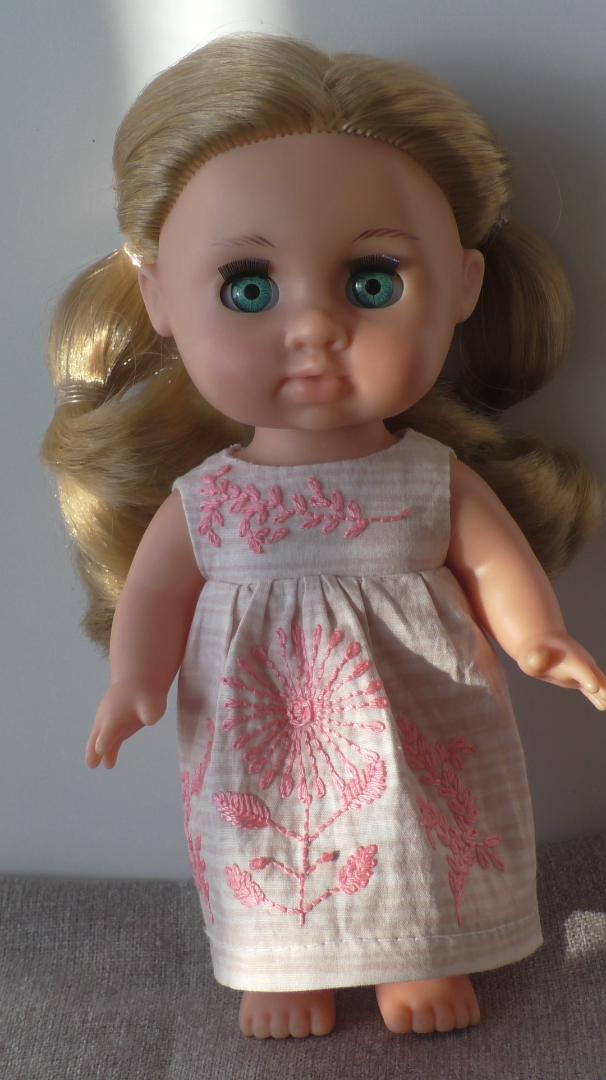 У Сони появилось платье из поплина с вышивкой. Вдохновило меня зелёное платье в полоску из предыдущей моей записи. И как это часто бывает, изменила почти всё. Итак, вот что получилось. Выкройку перенесла на ткань и выполнила вышивку швом "назад иголку", тамбурным и швом "пёрышко". Застёжка сзади на пришивные кнопки. Соня довольна обновкой и готовится к летним прогулкам босиком. А я отправляюсь рассматривать залежи лоскутов в поисках вдохновения. Мне интересно узнать ваши отзывы, советы и комментарии.