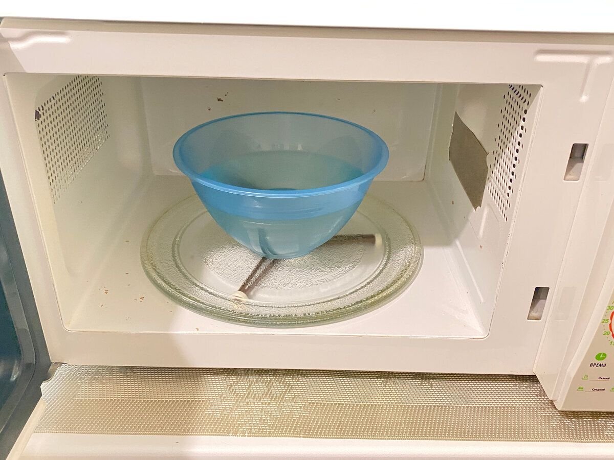 Всем привет, друзья! Сегодня я к вам снова с полезной информацией. Сегодня хочу поделиться простым способом, который поможет отмыть микроволновую печь. Беру небольшую емкость и наливаю в нее 500 мл воды. В воду добавляю 3 ст. ложки пищевой соды. Все перемешиваю и включаю печь на полную мощность на 5 минут. Прошло 5 минут. Содовый раствор сделал свое дело. Загрязнения у меня размякли. В этот раствор добавляю немного моющего средства для посуды. Теперь беру вот такую удобную щеточку, макаю в этот раствор и приступаю к чистке. Содовый раствор, кстати, хорошо устраняет неприятные запахи. После щетки беру обычную губку со средством для мытья посуды и все окончательно домываю. Вот такой у меня получился результат. Теперь микроволновка сияет чистотой. Нет никакого жира, грязи и т.д Также еще хочу рассказать, как можно быстро почистить крышку микроволновой печи. Просто беру кондиционер для белья(лучше брать не концентрированный, а обычный). Наношу на тряпку и приступаю к чистке. Вот такой блес