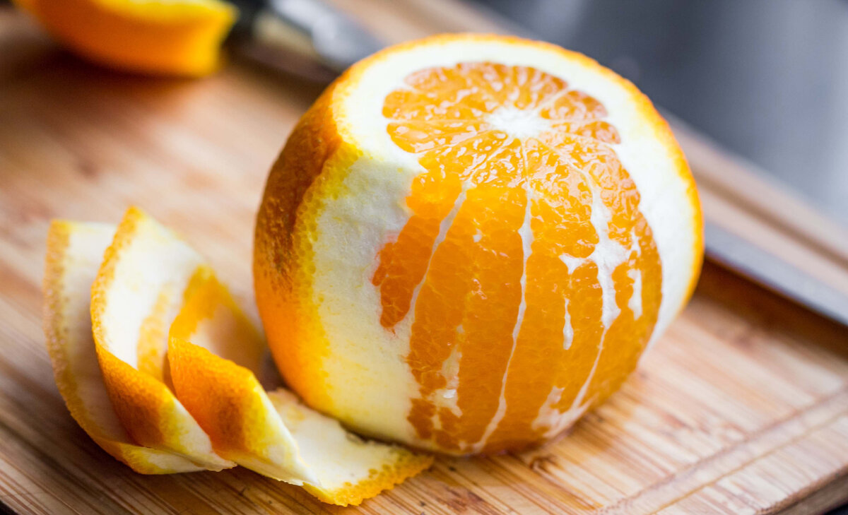 Друзья, сегодня хочу поделиться с вами любимым постным пирогом! В рецепте отсутствуют яйца и молочные продукты, а сода гасится апельсиновым соком. В рецепте используются простые продукты. Для приготовления понадобится: 1. Апельсины - 6 штук (или 1 стакан апельсинового сока и 2 апельсина). 2. Сахар - 120-150 г (в зависимости от того, насколько кислые апельсины). 3. Изюм - 80-100 г. 4. Масло подсолнечное рафинированное - 100 г 5. 1/2 чайной ложки соды 6. 50 г арахиса или любых других орехов. Для начала нужно снять кожу с 2 апельсин, вот так. Кожуру 2 апельсинов пропустить через измельчитель так, чтобы получилась крошка, а из мякоти вырезать дольки. Из 4 других плодов выдавить сок или взять стакан готового магазинного сока, можно взять апельсиновый или мультифруктовый. В сок добавить масло, сахар, соду и размешать. Появится пенка: это сода гасится апельсиновым соком. Сюда добавить апельсиновую крошку, промытый и отжатый изюм и постепенно вводить просеянную муку. Тесто должно получиться не