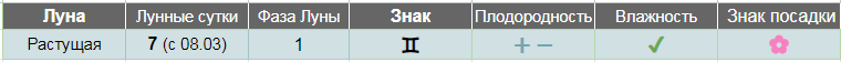 ____________________ 28 марта вт Во второй половине дня Луна входит в самый плодородны знак Зодиака! Поэтому актуальны все работы с растениями: посев, посадка, пересадка, пикировка.