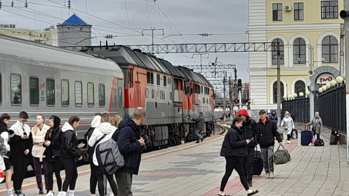 Приветствую вас друзья. Путешествую я довольно много, но такое со мной случилось впервые. Отъехали мы от очередной станции и вдруг остановились в чистом поле. Ну встали и встали, мало ли причин. Может впереди семафор красный. Но когда мы простояли полчаса, пассажиры начали задавать проводнице вопросы, - А какого собственно стоим? Она сказала что не знает. Когда мы стояли уже больше часа, пришла новость что оказывается сломался наш тепловоз и мы ждём другой. Который оттянет нас на следующую станцию. Резервный тепловоз приехал еще спустя полчаса. Итого мы простояли в поле больше 2 часов. Повезло что это была второстепенная ветка, иначе мы создали бы огромную пробку из идущих за нами поездов поломав все рассписание поездов на этом направлении. Резервный локомотив оттянул нас на следующую станцию На фото видны два тепловоза, наш сломавшийся и резервный который приехал нас спасать. Ну а дальше начался квест. Ибо у многих были пересадки, а наш поезд опоздал на 2 часа. После чего, от