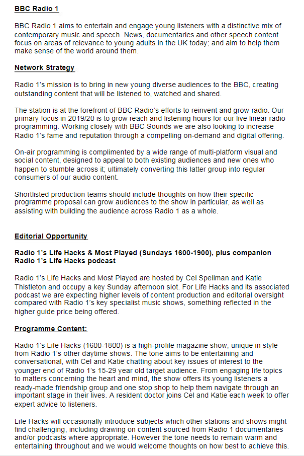 COMMISSIONING BRIEF RADIO DOCUMENTARY