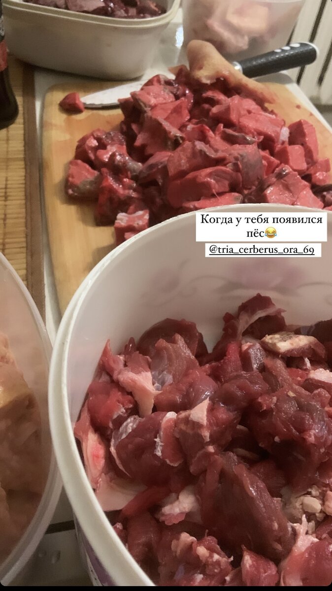 Перед покупкой собаки,мы очень тщательно подготовились и прочитали кучу материала по теме собак породы АмСтафф и питания в частности. После того как забрали щенка у заводчика, сразу кормили кашами с собачьей консервой.Но мы понимали,что он растет,и нужно пересматривать питание. Натуралка. После достижения определенного возраста,мы перевели Локи на натуральное питание. В такое питание входит: Многие ужасались при виде огромного количества мяса😂 Да и я тоже 😂 Но меня выручал молодой мой человек,который брал на себя всю эту грязную работу😂