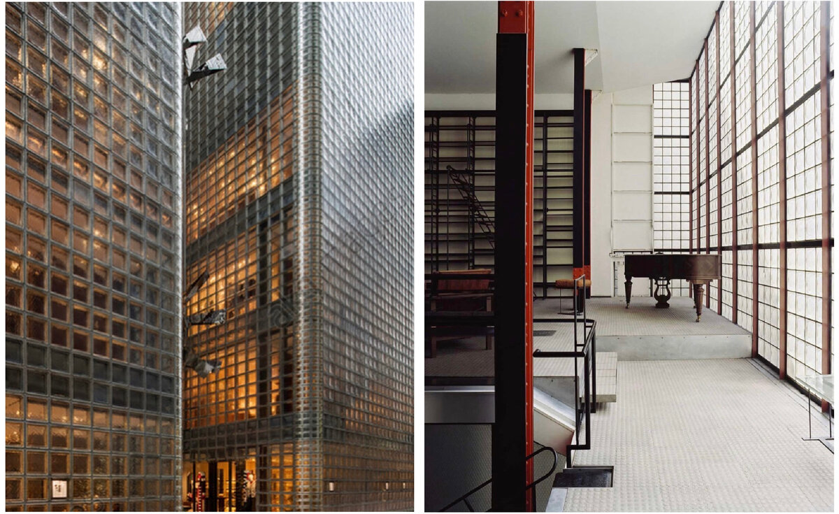 В 1930 году в Париже был возведён жилой «стеклянный дом» (или Maison de verre) из стеклоблоков по проекту П. Чаро и Б. Бивоет.