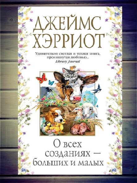 Друзья, я прочитала книгу Джеймса Хэрриота "О всех созданиях - больших и малых" и могу с уверенностью сказать, что это книга для всех, кто любит животных. Если вы не любите животных, то можете не читать эту книгу и продолжать хандрить в своей скучной жизни. Хэрриот пишет о своей работе ветеринара в Англии и о том, какие приключения ему приходится переживать с разными зверьками. Он описывает все очень живо и ярко, если вы закроете глаза, то будете чувствовать запахи и слышать звуки, которые он описывает. Читая эту книгу, я поняла, что ветеринар - это не просто работа, это образ жизни. И я уверена, что многие из вас захотят стать ветеринарами после прочтения этой книги. Но не забывайте, что это не только смешные и забавные моменты, но и очень ответственная работа. Так что, если вы хотите посмеяться и познакомиться с разными животными, то обязательно прочитайте "О всех созданиях - больших и малых". А если не хотите, то я не знаю, что с вами не так.) Итак, как Вы уже догадались, именно