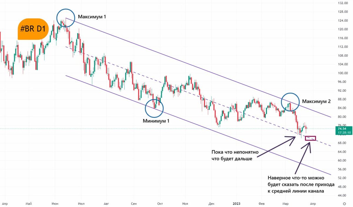 📈 #BR D1 Итак, особого развития отскока от средней линии канала мы так и не увидели и слив продолжился. Нет у меня особого желания гадать сейчас.. Наверное что-то по существу можно будет сказать после прихода к средней линии канала.