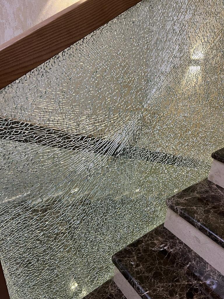 Стеклянные перила изготавливают из закаленного ламинированного стекла (триплекс) в целях обеспечения безопасности и прочности конструкции. Ламинированное стекло состоит из нескольких слоев стекла, соединенных между собой полимерной пленкой. Эта пленка удерживает на себе осколки и крошку при бое стекла, часто бой происходит у одного из стекол в триплексе, поэтому пленка с осколками держится на целом стеклоизделии. Предостерегаем вас от ограждений без триплекса! В случае если бы стеклянные перила были изготовлены из обычного однослойного стекла, они были бы более хрупкими и подвержены повреждениям. В случае разрушения такого стекла могут возникнуть серьезные травмы у людей, которые могут получить порезы и осколки стекла в результате его разрушения, риск для вашего имущества. Таким образом, использование ламинированного стекла позволяет обеспечить надежность и безопасность стеклянных ограждений и защитить людей от возможных травм в случае разрушения стекла. Если у вас имеется задание дл