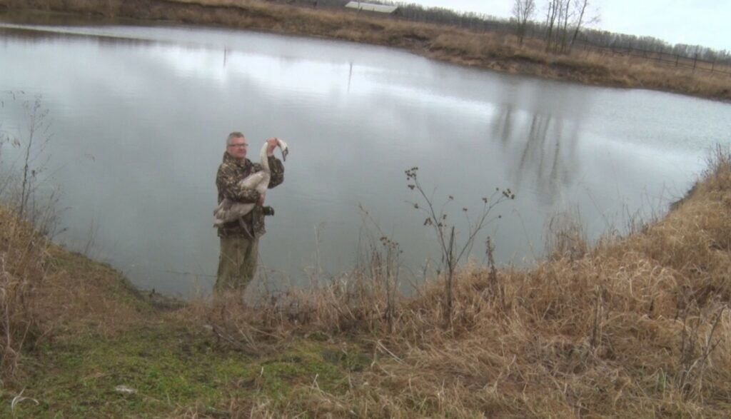 Брянский фермер выпустил спасенных зимой лебедей в свободное плавание
