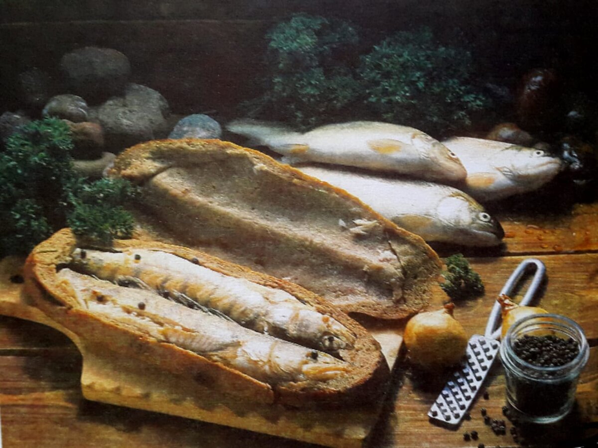 Подготовленную рыбу (вычищенную, выпотрошенную и тщательно промытую) посолить и целиком уложить на раскатанное толщиной 0.7 см ржаное тесто, поперчить, посыпать кольцами лука, сверху положить нарезанное тонкими пластинками сливочное масло.
