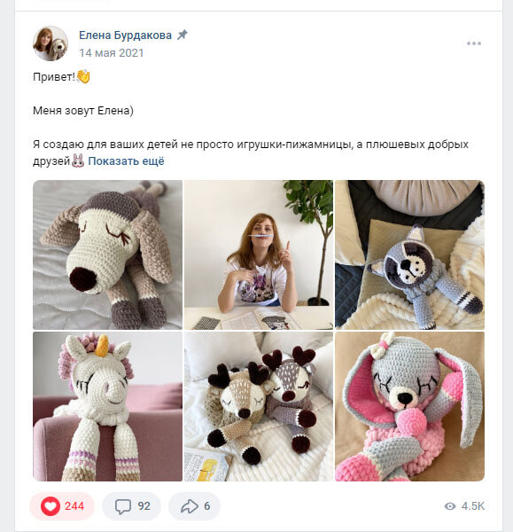 Продолжаем работать над личной страницей. По вашей личной странице должно быть понятно кто вы и чем вы занимаетесь, начало моего повествования тут После того как вы оформили все, что написано в первой части пришло время написать пост закреп. Ниже я приведу некую формулу, по которой писала это пост я. Важно помнить, что заинтриговать читателя нужно буквально первыми строками, Чтобы хотелось нажать "показать еще" . Формула поста в закреп для личной страницы. Блок 1. Состоит из одного — двух предложений и рассказывает о вашем деле. Начинаем писать с глагола (шью, вяжу, вышиваю) далее для кого и потом какую проблемы решаю. Блок 2. Состоит из трех — четырёх предложений. Что интересного можно найти у вас на странице. Тут вы можете чуть раскрыть кто вы, открывайте те стороны, которые близки вашей ЦА. То есть если ваша целевая аудитория мамы, можете написать "я как мама понимаю насколько важно...". В этом же блоке можно дать некий анонс, того что будет н вашей странице, если ЦА все та