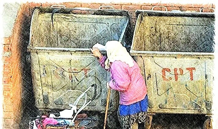 Бабка увлеченно ковырялась в мусорном контейнере, когда ей в спину прилетела палка. Палка больно ударила ее по сгорбленной спине. От боли она чуть не выронила свой черенок, но все же удержала его в сморщенной руке. Бабка обернулась и увидела пацанов, чему она не удивилась.