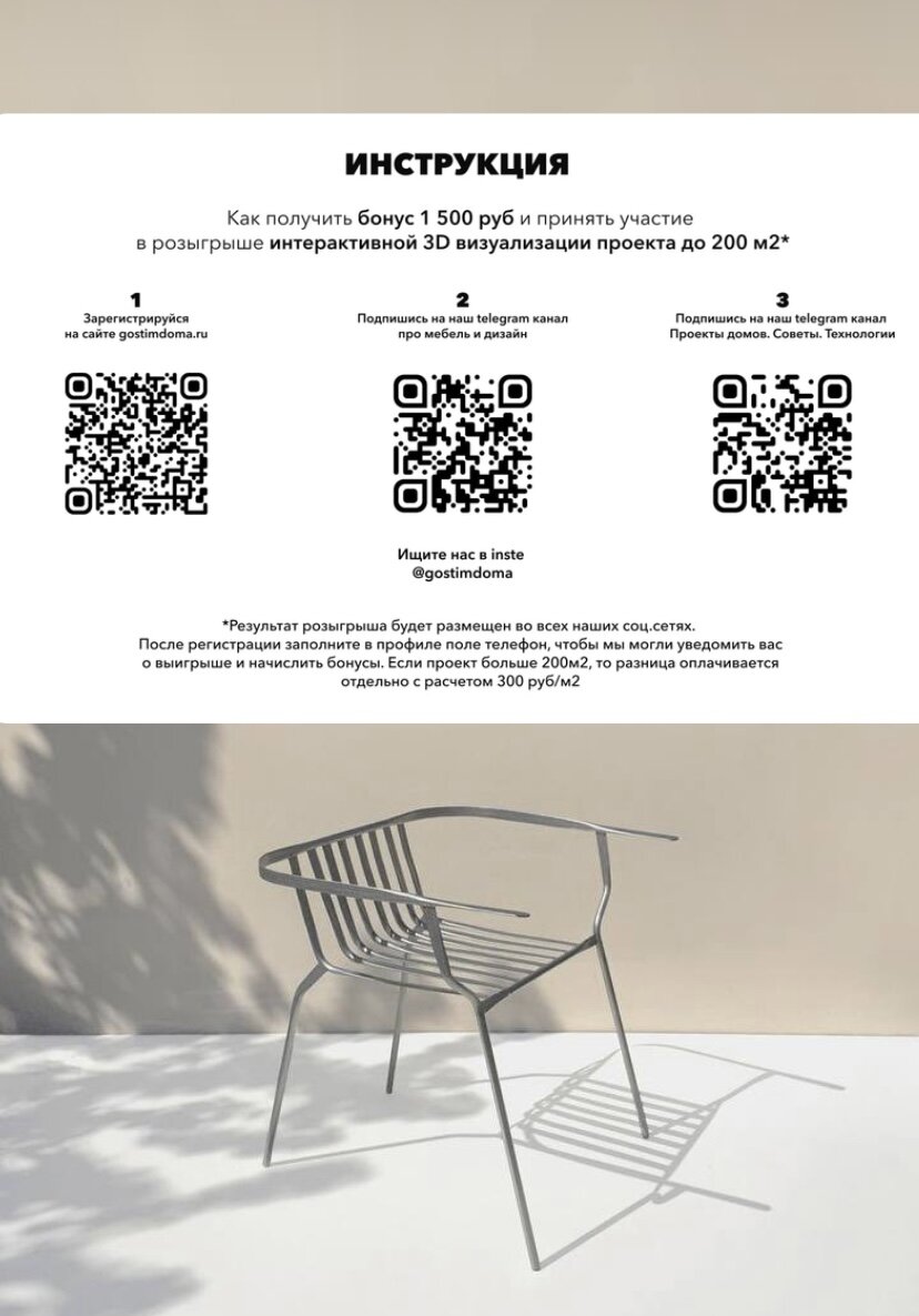 Зарегистрируйся на сайте 👉 gostimdoma.ru/signup И получи бонус 1500₽ и шанс выиграть интерактивную 3D-визуализацию проекта до 200м2! Акция действует до 05.04.2023! После регистрации в профиле укажите номер телефона, чтобы мы могли начислить бонус и активировать участие в розыгрыше.