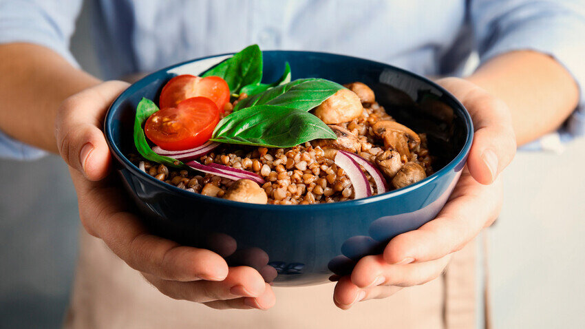 Эти сложные углеводы обеспечивают сытость и энергию, и их производство не требует больших затрат. При этом вареная гречка имеет высокую пищевую ценность. Помимо гречки, к другим сложным углеводам, которые можно употреблять на завтрак, относится овсяная каша, но именно та, которая требует длительного времени варки, а также перловая, перловая и пшенная каши. Вы не должны использовать манную крупу или сырые овсяные хлопья — это «быстрые углеводы», не обладающие высокой питательной ценностью.