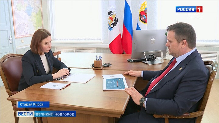 Главу Новгородской области интересовали вопросы социально-экономического развития муниципалитета. Елена Комарова руководит районом чуть больше трёх месяцев, но уже вошла в курс дел. В городе-курорте активно идёт реализация нацпроектов, федеральных и областных программ; ремонтируются сразу две школы - номер восемь в Старой Руссе и в деревне Сусолово. В апреле начнется благоустройство Царицынского и Екатерининского источников, появится "Путь соли" и другие новые туристические объекты. Андрей Никитин также поинтересовался реализацией подпроекта "Развитие территорий центра города Старая Русса и создание пешеходных маршрутов". Он финансируется новым банком развития "БРИКС". В этом году по договору планировалась реконструкция "Живого" и "Соборного" мостов. Пока сроки реализации сдвигаются на неопределённый срок, доложила глава района. Также губернатор и глава Старорусского района обсудили вопросы строительства нового курорта, профильные классы в школах, развитие малых предприятий, а также