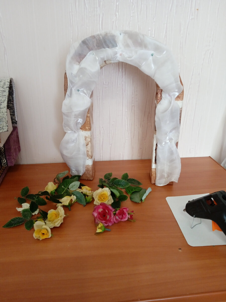 Все куклы готовятся к пасхе. А впереди ещё и свадьба. Поэтому мне пришлось потрудиться. Из двух длинных кубических коробок сделала основу. Из картона склеила верхнюю полукруглую часть арки. Склеенную арку обклеила строительным скотчем, а затем самоклеющейся пленкой под кирпич (я так люблю её использовать). А потом декор. Использовала белый капрон, искусственные цветы и листочки, тесьму из пластмассовых бусин. Всё приклеивала на клей - пистолет. Вот итог. А девчонки уже и давай позировать. Уж так им эта арочка понравилась. Размечтались! А арка-то для фотосессий тоже подойдет. А чья свадьба - то? Вот вопрос. Но об этом скоро! Как вам моя арочка? Пишите свои комментарии. Буду рада прочесть. До следующих публикаций.