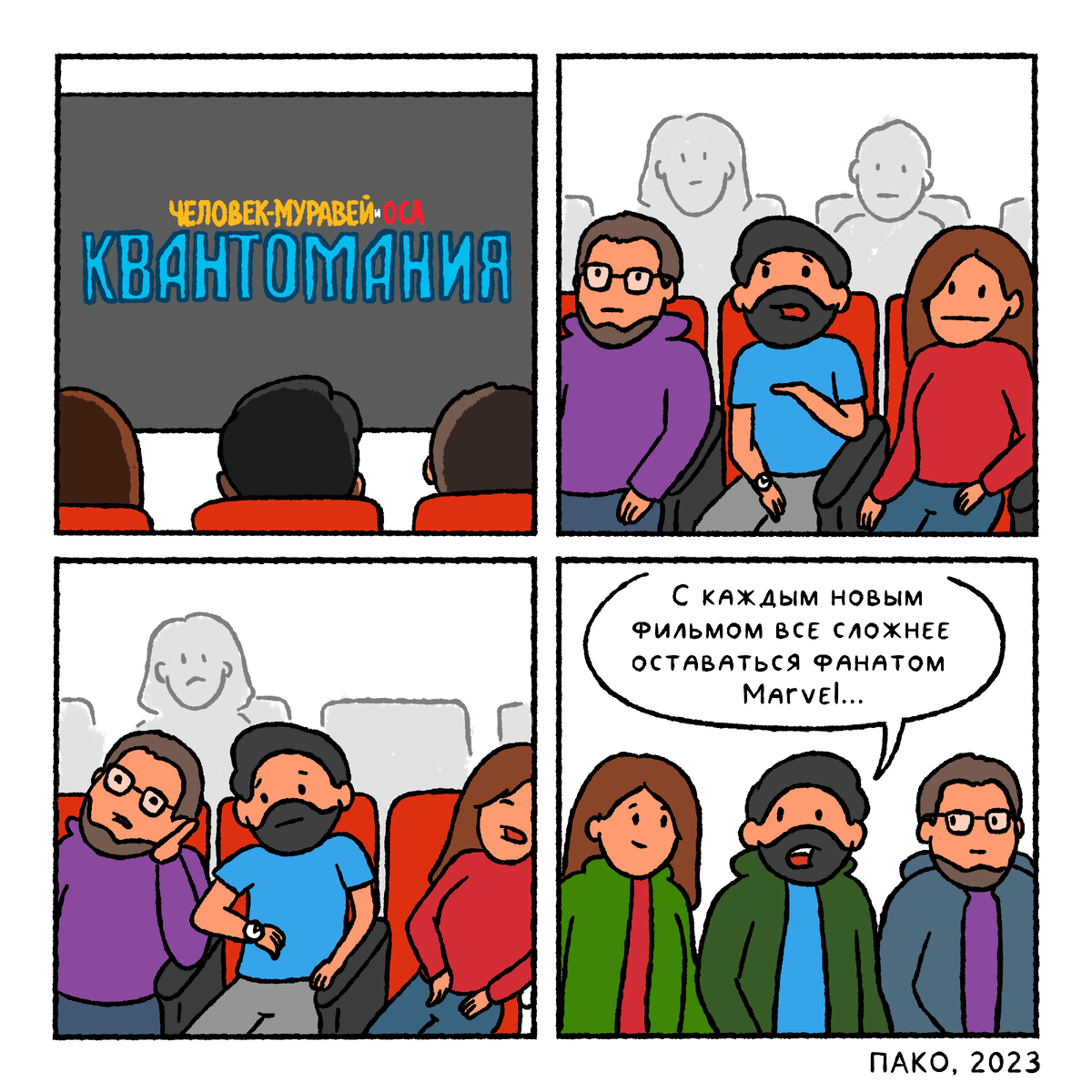 Рассказывать о своем творчестве, конечно, можно бесконечно, но иногда мне становится сложно придумать, о чем еще рассказать в очередной подборке со своими работами. Поэтому сегодня я, пожалуй, просто немножко прокомментирую каждый комикс, который попал в эту статью - тем более, что все эти комиксы в основном обо мне самом. Всем привет, меня зовут Павел Пако (если вы вдруг не знаете) и в конце прошлого года я начал выкладывать в своей группе Мозги трески простенькие комиксы, вдохновленные моей собственной жизнью. В основном они про игры и кино - потому что я очень увлекаюсь этими темами, но также я время от времени зарисовываю какие-нибудь забавные случаи из жизни. Ниже вы можете увидеть 10 таких комиксов - каждый из них я немножко прокомментирую. Комиксы Marvel я начал читать еще в детстве - мне всегда нравились истории про Человека-паука и других супергероев. Так что и фильмы от этой компании я уже долгие годы не пропускаю и стараюсь всегда ходить в кино. Но в последнее время даже мен
