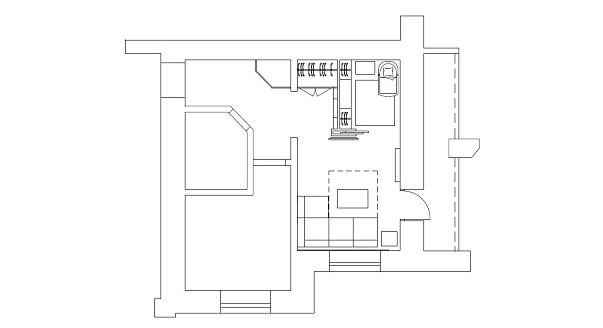 Как спланировать зонирование комнаты, чтобы в ней можно было разместить и гардеробную, и зону для ребенка? За консультацией мы обратились к архитектору Валерии Сенькиной. Она посоветовала сразу позаботиться об отдельном и комфортном уголке для будущего малыша, зонировав пространство комнаты путем возведения дополнительной перегородки. Планировка, предложенная архитектором: зонирование с помощью небольшой дополнительной перегородки позволило предусмотреть комфортный уголок для новорожденного и выполнить другие пожелания хозяйки. В результате при входе в комнату, слева, образуется место для довольно вместительного шкафа около 90 см глубиной. При грамотном расположении внутренних секций в нем можно разместить все необходимое. Внутреннее устройство шкафа нужно хорошо продумать, и тогда в нем на разных уровнях поместятся одежда, белье, обувь и многие другие вещи. На стенке перегородки, напротив входа в комнату, архитектор предлагает сделать неглубокие, порядка 12-15 см, полочки (их може