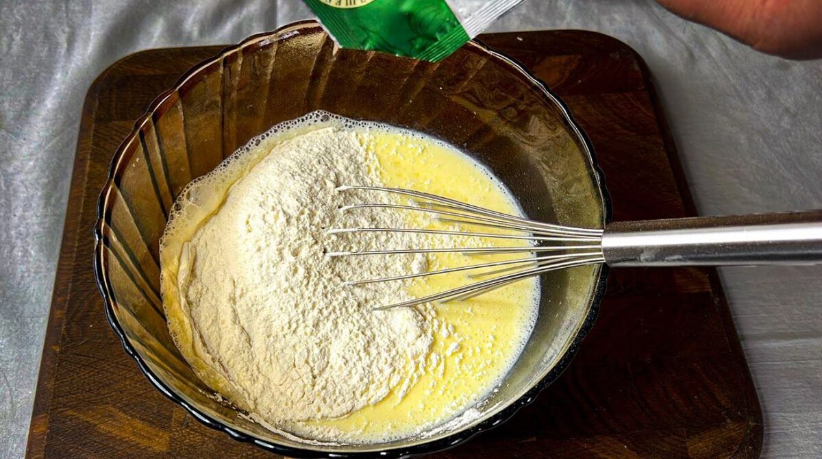 2.В глубокую ёмкость разбиваем яйца, выливаем молоко и тщательно всё размешиваем до однородности.