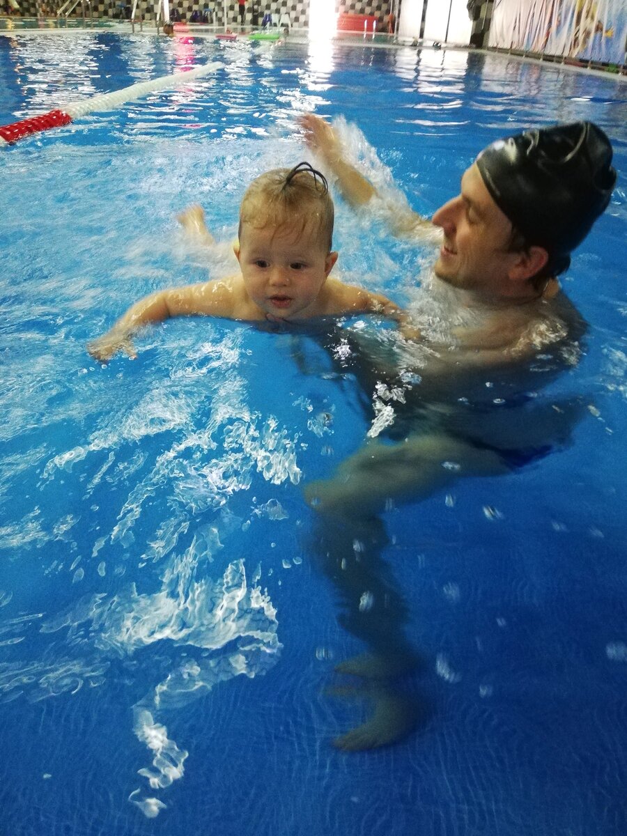 Доброго времени суток, читающим🌷. По плаванию для малышей нет однозначного мнения. Я знаю тех, кому категорически "не зашло". Некоторые подхватили в бассейне всякие болячки. Но мой опыт с детьми и плаванием только положительный. С начала рождения Алисы я много времени проводила в сообществах мамочек. И там мамы часто обсуждали плавание позитивными сообщениями. У Алисы долго сохранялся тонус в правой ножке, мы делали курсы массажа, но тонус не уходил, по словам невролога. И я решила "подключить" ещё и плавание для оздоровления. Это был 2020 год. Алисе было 6 месяцев. Нашла тренера, бассейн, с виду чисто и приятно. Тренер мужчина, с опытом тренерства, но без детей. Тогда меня это не смущало. Будет ли плакать ребёнок в чужих руках?Скорее всего да. Алиса плакала, но недолго. Плакала периодами, если пропускали занятия, то снова начиналась адаптация. Но ходили мы постоянно, старались не пропускать. Занятия были насыщенными, тренер чередовал активности в воде, поэтому для плача време