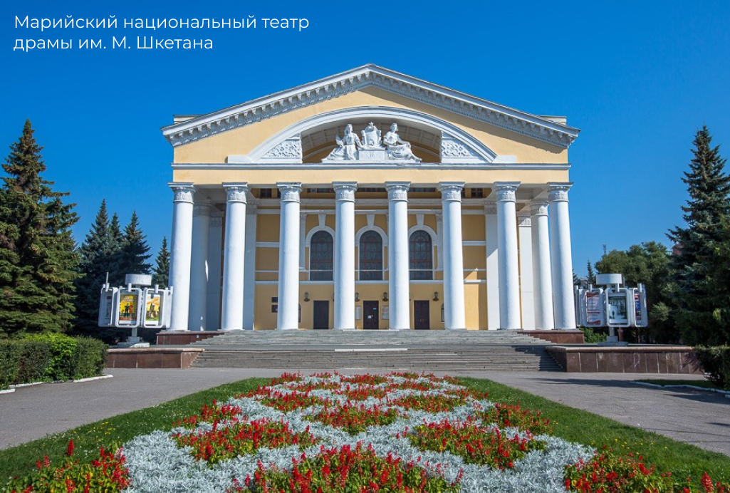 🟢 Марийский национальный театр драмы им. М. Шкетана 🟢 Марийский государственный академический театр оперы и балета им. Эрика Сапаева 🟢 Республиканский театр кукол 🟢 Академический русский театр драмы им. Г.Константинова 🟢 Марийский театр юного зрителя