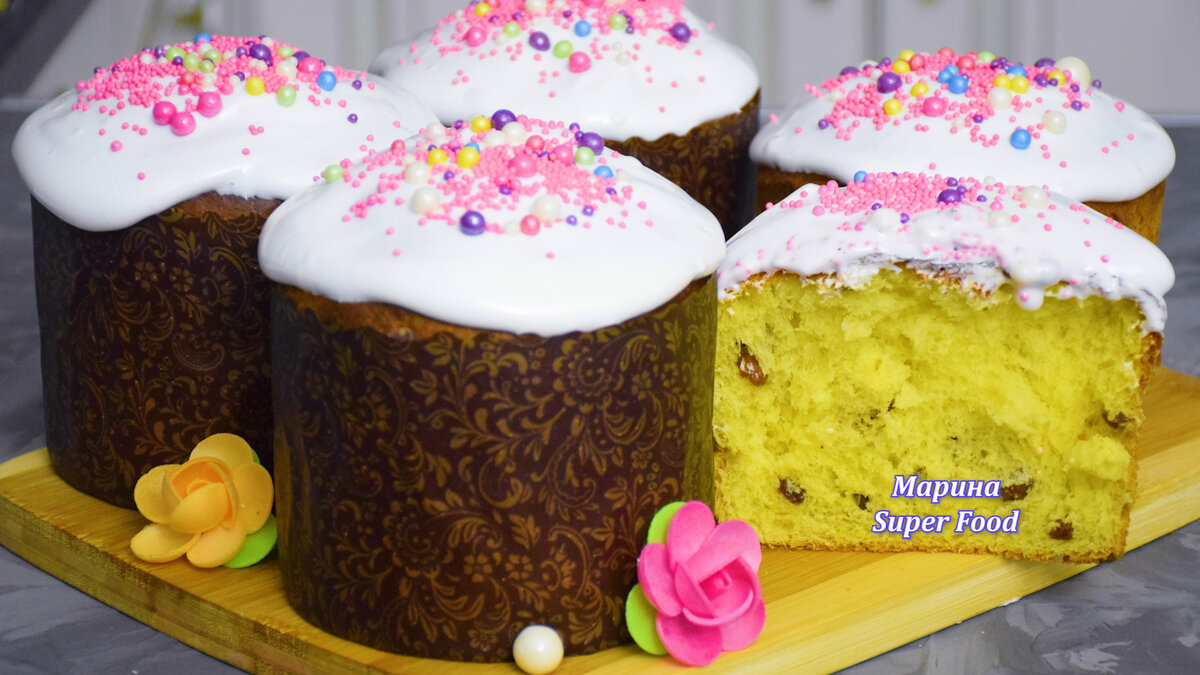 Рецепт вкусного пасхального кулича на кефире. Очень аппетитная солнечная выпечка с нежным, сочным и ароматным мякишем. Белоснежные шапочки из меренги и разноцветная посыпка - настоящий праздник весны!