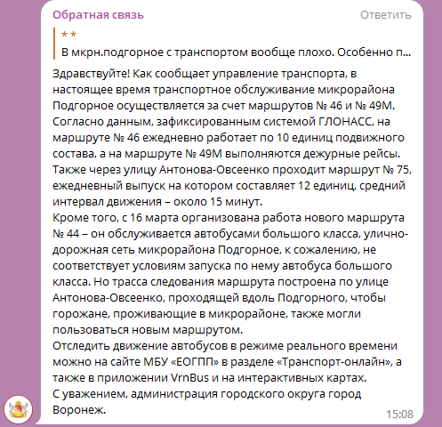 Чиновники ответили на критику транспортного обслуживания воронежского микрорайона