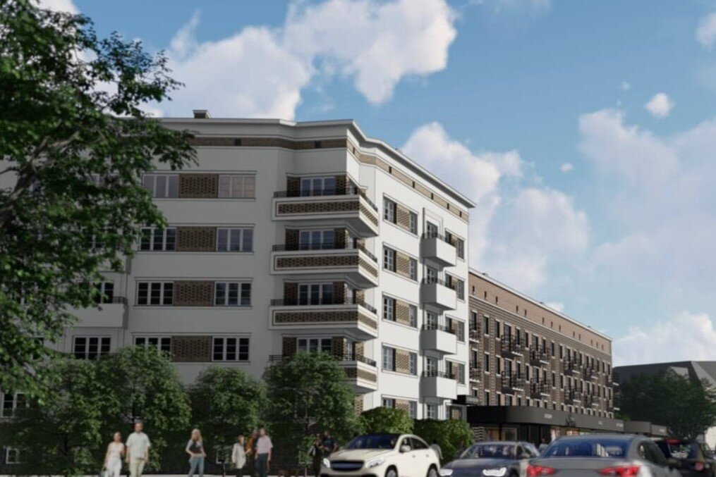 Фонд капитального ремонта Калининградской области показал эскизы новых фасадов домов на улице Театральной, 36-40 и 42. Изображения опубликовали в телеграм-канале организации. Согласно эскизам, фасад дома №36-40 облицуют коричневым клинкерным кирпичом и украсят рельефным узором. На стены примыкающего к нему здания №42 нанесут светлую штукатурку, а между окнами и на угловых балконах сделают декоративные вставки. Одноэтажную пристройку с магазинами также хотят привести в порядок. На эскизах её фасад облицевали плиткой графитового цвета. На стене со стороны железной дороги предлагают нарисовать паровоз. Дома на улице Театральной построили в 1964-1966 годах. Разработкой проекта и капитальным ремонтом зданий занимается компания «ТерраСтрой». В октябре 2022 года с ней заключили два контракта на общую сумму свыше 48 миллионов рублей. Ранее фонд уже использовал тёмный клинкер при ремонте домов второй половины XX века в Советске. Облик выполнили в стиле кирпичного экспрессионизма 1920-1930-х год