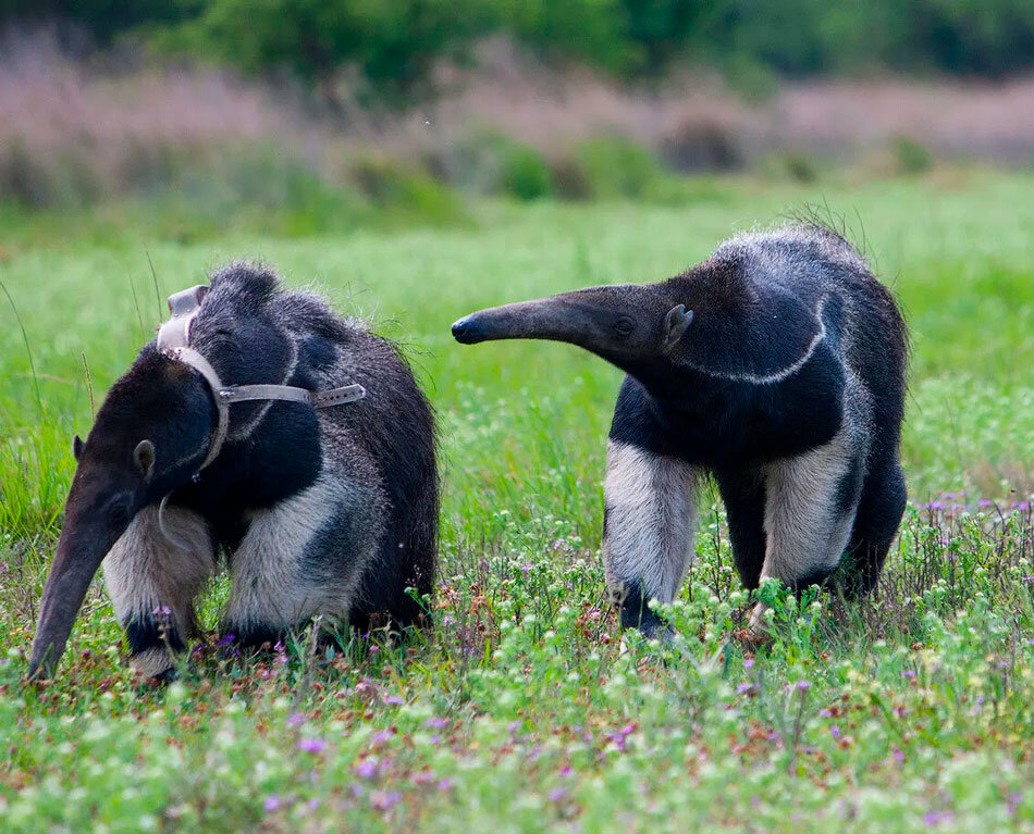 Муравьеды (Myrmecophaga tridactyla) - это животные, которые обладают уникальными адаптациями к своему питанию, состоящему из муравьев и термитов. Они живут в тропических лесах и саваннах Центральной и Южной Америки и могут достигать длины до 2,5 метров и веса до 50 кг. Муравьеды имеют очень медленный метаболизм и могут тратить на пищеварение до 2 недель. Они также имеют очень длинный и липкий язык, который может вытягиваться на расстояние до 60 сантиметров, чтобы достигнуть насекомых внутри их муравейников и термитников. Кроме того, муравьеды обладают когтями, которые помогают им легко расчищать проходы внутри муравейников и термитников. Однако, несмотря на свою внушительную величину и сильную мускулатуру, муравьеды являются довольно миролюбивыми животными и обычно не представляют угрозы для людей. Более того, они играют важную роль в экосистемах Центральной и Южной Америки, помогая контролировать население муравьев и термитов.
