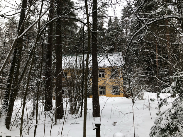 Из-за деревьев выглядывает двухэтажный домишко – это и есть дом-музей Корнея Ивановича Чуковского (настоящее имя писателя – Николай Корнейчуков).