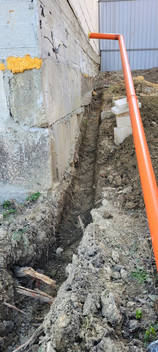 С утра со свежими силами докапываю траншею для канализационной трубы. Теперь начитаю собирать конструктор из канализационных труб. На выходе трубы из стены одеваю тройник, потом в верх пойдет фановая труба. Угол собираю из двух уголков по сорокпять градусов, чтобы уменьшить вероятность засора. А вот и длинная змея канализационной трассы, восемь трехметровых труб. А это уже завел трубу в первый колодец. Когда копалась траншея грунт был каменистый и такими камнями лучше трубу не засыпать, чтобы случайно не пробить трубу камнями. Для засыпки использую рыхлую глину которую достали при рытье котлована, присыпаю трубу примерно на десять сантиметров, а потом притоптываю чтобы уплотнить глину вокруг трубы. К вечеру все это выглядит вот так. Теперь уже можно смело мыть руки в умывальнике и ехать домой с чистыми руками.