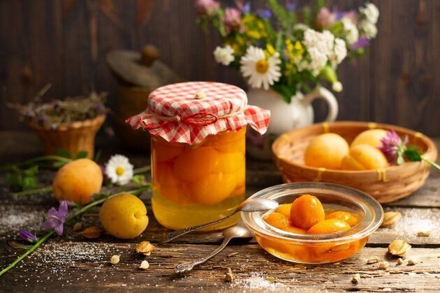 Абрикосы в сиропе – один из самых простых заготовок на зиму. Для приготовления этого лакомства на зиму потребуются всего лишь твердые плоды абрикоса, вода, сахар и немного лимонной кислоты. 1. Первым делом нужно тщательно промыть абрикосы и удалить косточки; 2. Для консервации абрикосов можно взять литровые банки, предварительно простерилизовав их; 3. Переложите абрикосы в банку. В литровую банку вмещается примерно 12-13 половинок абрикосов; 4. Залейте банку крутым кипятком, закройте крышкой и оставьте примерно на 20 минут. Проделайте тоже самое и с остальными банками; 5. Далее через 20 минут слейте жидкость из банок в мерную кружку. У вас должно получится примерно 450 мл жидкости из одной банки, а из 4 банок - 1 литр 900 мл жидкости; 6. Всю жидкость из банок слейте в толстостенную кастрюлю; 7. В кастрюлю добавьте лимонную кислоту (на 1л воды 0.5 ч.л) на 4 банки 2 чайных ложек и 900гр сахара; 8. Вскипятите полученный раствор до сильного бурления (5-6 минут); 9. Как только сироп прокипе