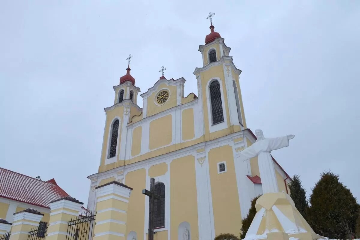 Рядом с костелом, на небольшой возвышенности, установлена Статуя Христа — очень похожая на уменьшенную копию Искупителя в бывшей столице Бразилии. Но так только кажется. На самом деле, если присмотреться, это копия статуи Кришту Рей (Христос-Царь) из португальского города Алмада. Ее поставили по инициативе местных ксендзов, и если смотреть из-за спины Иисуса, создается впечатление, что он обнимает весь город своими руками. Именно поэтому туристы видят сходство с Рио-де-Жанейро.