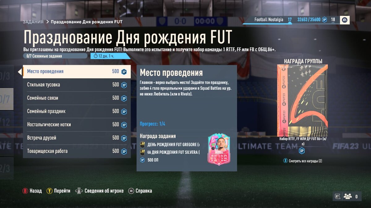 Прицельный удар иногда требуется для выполнения заданий в FUT23. Например, чтобы получить жетон обмена или определённого игрока, в данном случае Gregore (85 рейтинга). На консоли Xbox прицельный удар выполняется, если зажать RB и ударить кнопкой B. Внимательно изучайте задания. В некоторых нужно забить гол прицельным ударом в одной или нескольких играх, а других – в разных играх, например, в количестве 5 голов. Часто такие задания можно выполнять, играя не с игроками онлайн, а с компьютером в режиме Squad Battles.